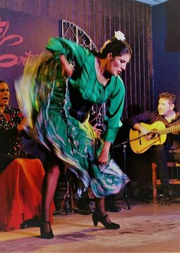 Nuestro espectáculo consta de un guitarrista, un cantaor o cantaora y dos bailaores o tres, según el evento o artista invitado. Combinamos temas alegres y pasionales con temas más profundos, para llegar a todos los gustos.